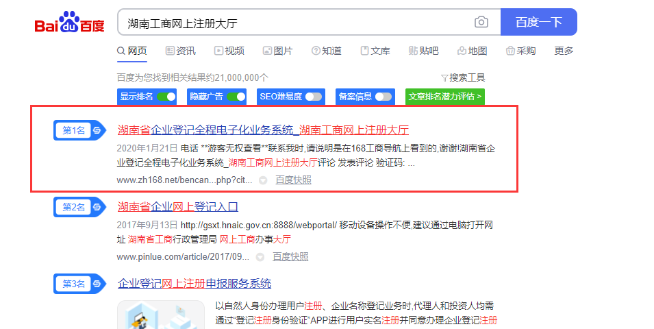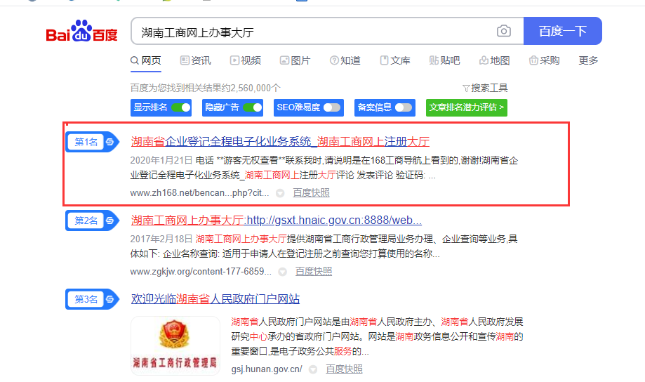 長沙公司注冊網(wǎng)站優(yōu)化案例